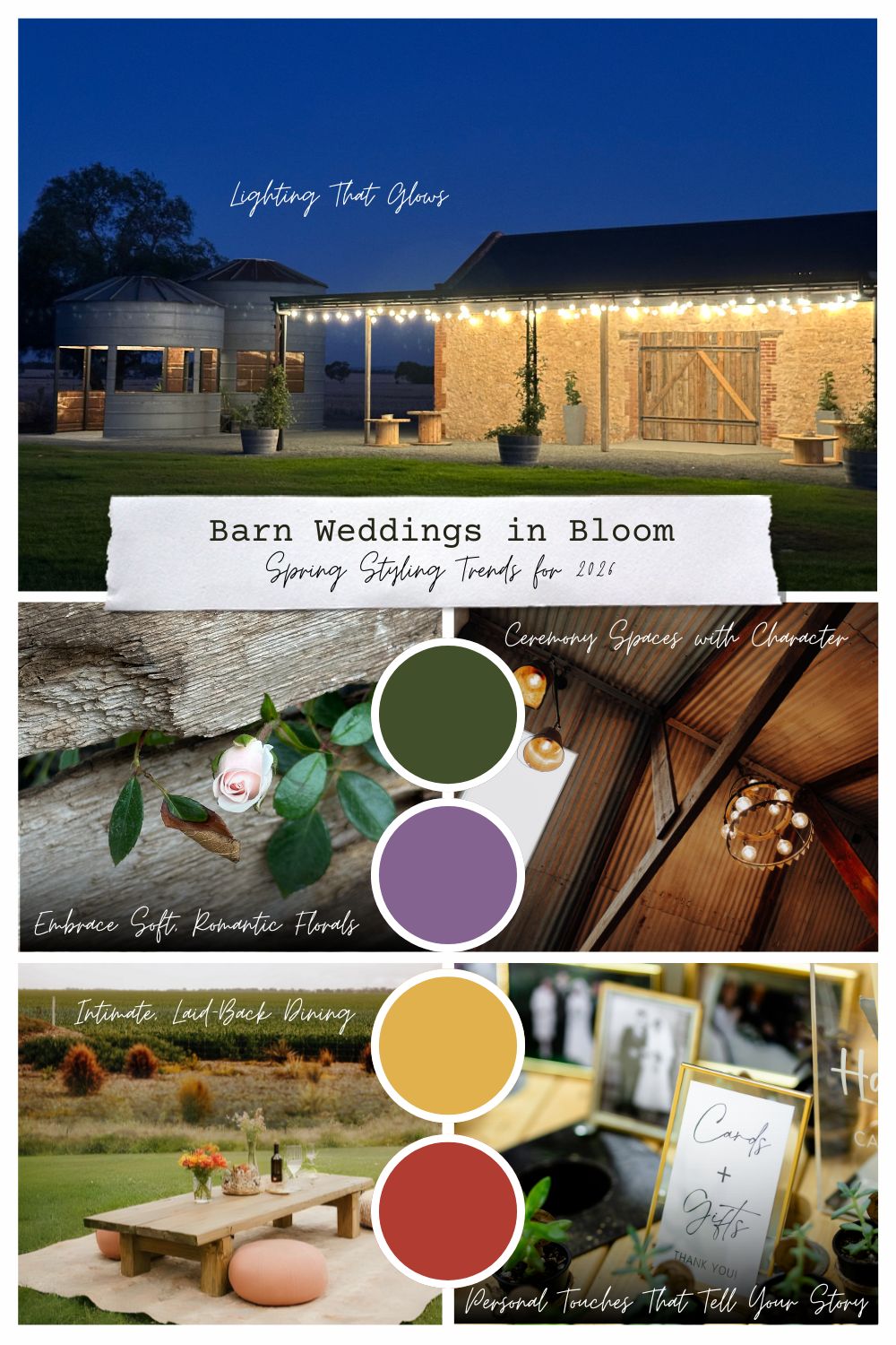 Spring is the season of new beginnings, and there’s no better time to celebrate love. As the days grow warmer and the countryside bursts into bloom, barn weddings step into their most magical moment. Rustic charm meets natural beauty, and with a few thoughtful touches, you can transform a simple space into a stunning spring celebration. Here’s how to style your barn wedding this season, with some of the most beautiful trends emerging for 2026. 🌿 Embrace Soft, Romantic FloralsThis year’s biggest trend? Effortless, garden-inspired arrangements. Think trailing greenery, delicate wildflowers, and soft seasonal blooms in blush, peach, and cream tones. Mix fresh florals with dried grasses for texture, or hang cascading floral installations from beams to draw the eye upward. It’s a perfect way to highlight a rustic barn’s natural character. ✨ Ceremony Spaces with CharacterInstead of traditional arches, couples are opting for creative ceremony backdrops that blend with the landscape, think floral pillars, ground-level meadows, or simple wooden frames dressed with climbing blooms. Whether you say “I do” beneath original timber beams or under the wide open sky, spring light makes every moment feel golden. 🍷 Intimate, Laid-Back DiningMicro weddings and relaxed receptions are set to shine again in 2026. Long, shared tables styled with linen runners, bud vases, and candle clusters feel timeless, or take it outdoors for a picnic-inspired setup with low tables, cushions, and grazing platters under fairy lights. The focus is on atmosphere over formality, creating a warm, welcoming space where guests can truly connect. 💡 Lighting That GlowsAs the sun sets, soft lighting transforms a barn into something magical. Lanterns, fairy lights, and clusters of candles create a romantic glow, while statement pendant lights or chandeliers add an elegant twist. Layering light sources makes even the simplest setting feel deeply atmospheric. 📸 Personal Touches That Tell Your StoryThe most memorable spring weddings are deeply personal. Add signage with meaningful quotes, display photos of your love story, or create a bespoke welcome drink inspired by your favourite cocktail. Every small detail helps turn your wedding into a celebration that’s uniquely yours. Whether you’re dreaming of a floral-filled ceremony or a relaxed picnic reception under the stars, spring is the perfect season to bring your barn wedding vision to life. With nature as your backdrop and thoughtful styling touches, your day will feel timeless, joyful, and unforgettable. 📍 Wildman Farm — intimate weddings and elopements on the Adelaide Plains. |